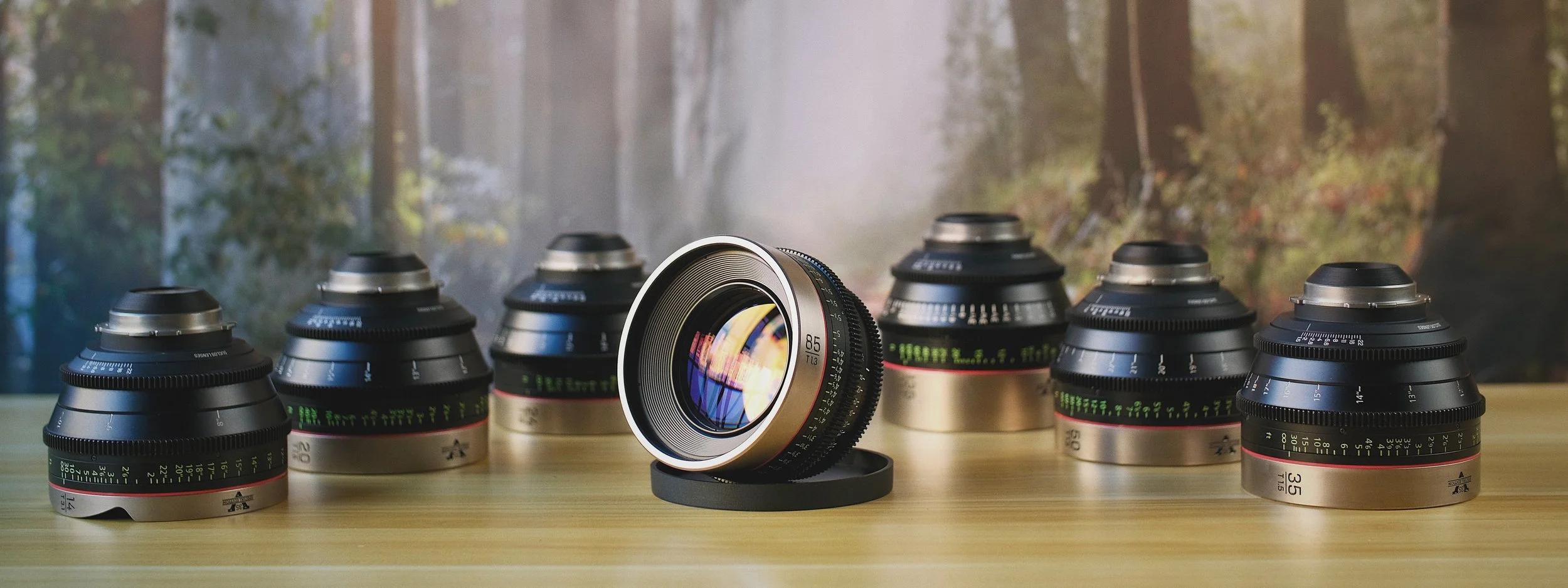 14mm T3.1, 20mm t1.5, 24mm t1.5, 35mm t1.5, 50mm t1.3, 85mm t1.3, 135mm t2.0, 114mm OD, EF, Full Frame Coverage, 700/day: 100/LENS