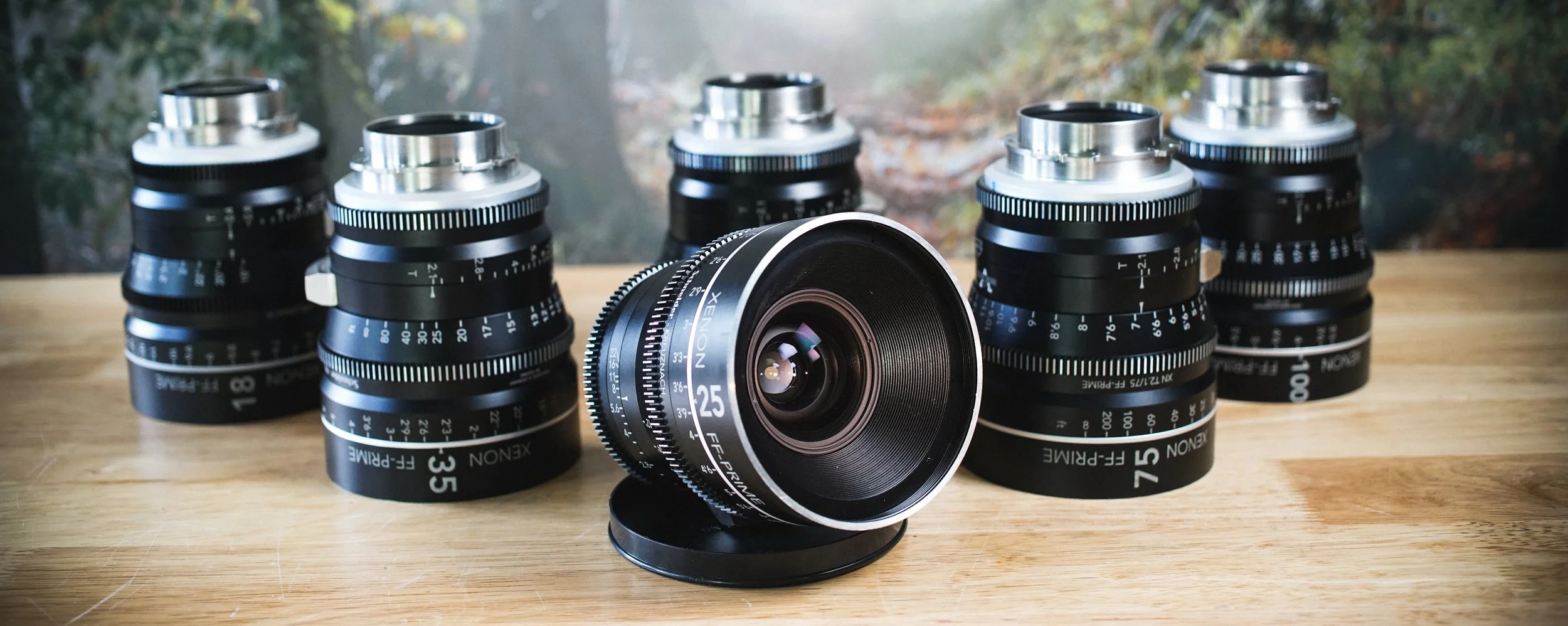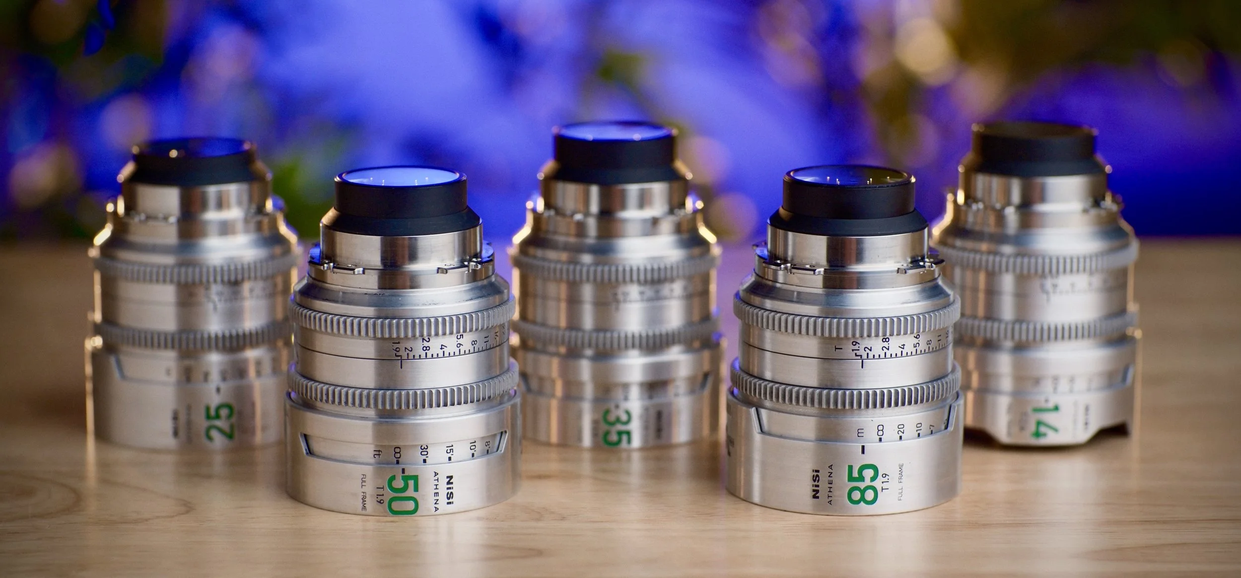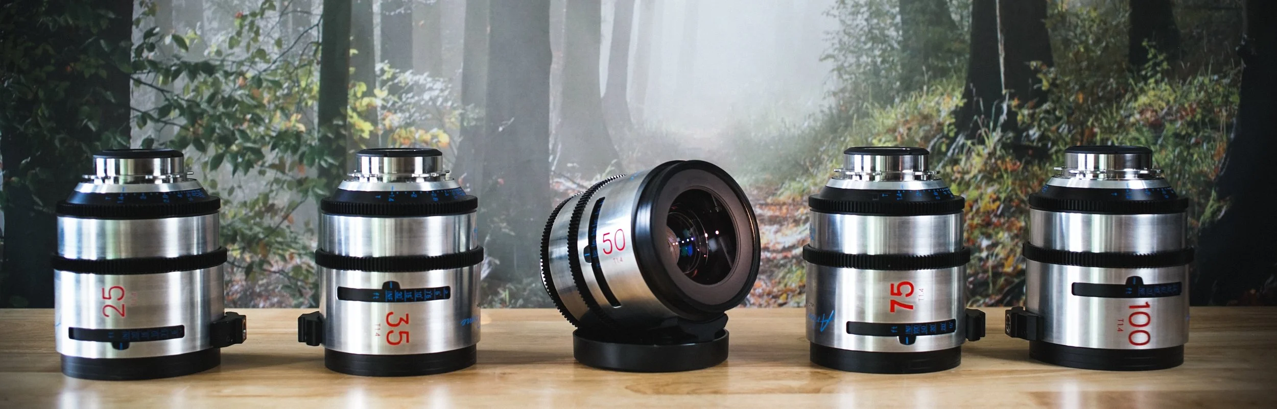 25mm T1.4, 35mm T1.4, 50mm T1.4, 75mm T1.4, 100mm T1.4